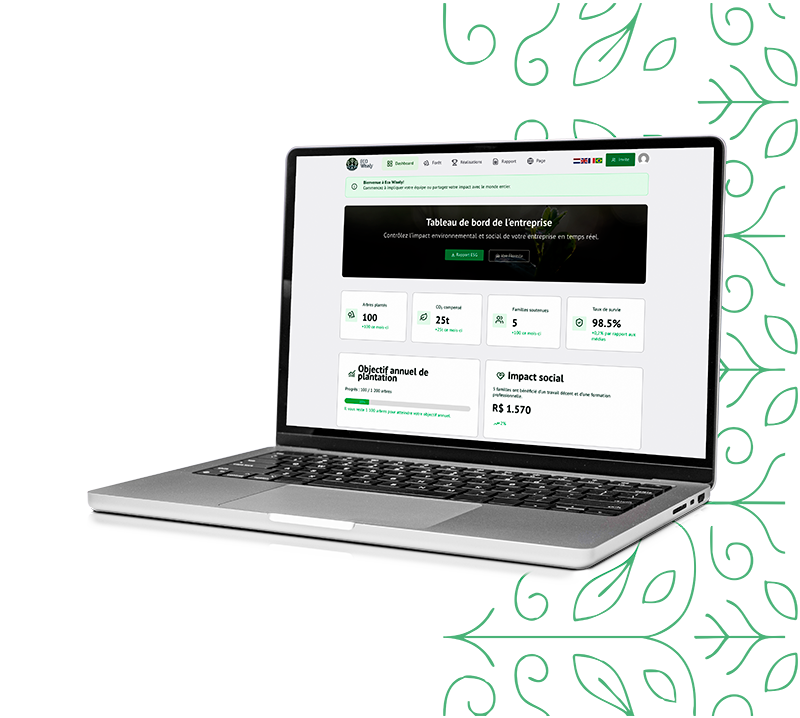 Faites de l’impact un levier durable. Associez votre stratégie d’entreprise à des résultats tangibles : création d’emplois verts, régénération d’espaces naturels et développement économique local. Accès à des outils de pilotage ESG et à un label argenté valorisant